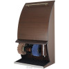 Машинка для чистки обуви Royal Design Wood – версия в деревянном корпусе популярной модели из стали Royal Design. Дизайн машинки подойдет для любого интерьера офисных помещений, ресторанов, гостиниц, проходимость которых не превышает 100 человек. Корпус этого аппарата выполнен из шпона натурального дерева. Цветовая гамма модельного ряда включает три варианта дерева: светлый дуб, средний орех и темный венге.Аппарат включается и выключается нажатием руки на выключатель, смонтированный на рукоятке машины. Автоматический цикл работы – 1 минута. Ёмкость для крема оснащена пластиковым шариковым дозатором. Для установки и подключения устройства не требуется специально подготовленного места, необходимо лишь наличие розетки питания напряжением 220 Вольт.