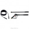 - Шланг высокого давления с винтовыми металлическими соединениями (8 м).- Пистолет с шарнирным соединением для предотвращения скручивания шланга.