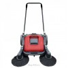 Снабжена двумя боковыми щетками с универсальной щетиной, износостойкой роликовой щеткой и специальным резиновым лезвием-скребком, который позволяет собирать мелкий мусор. Продолжительная работа без снижения эффективности возможна благодаря большому объему бака для мусора 55 л. Машина компактна и маневренна, что позволяет проводить уборку даже в труднодоступных местах.