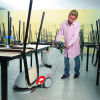 - Эргономичная и простая в использовании машина: просто залейте в бак раствор, установите щетку и опустите сквидж для начала работы.