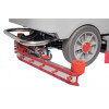 - При столкновении водосборной балки с препятствием, она отстёгивается от поломоечной машины за счёт специального крепления. Это исключает необходимость дополнительных регулировок после таких столкновений и защищает от повреждений узел крепления водосборной балки и саму водосборную балку.