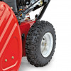 Двухступенчатая система шнеков обеспечивает эффективную обработку даже слежавшегося снега и легкой наледи. Стальной зубчатый шнек собирает снег, измельчает и передает его на крыльчатку. Выброс снега производится через поворотный разгрузочный желоб (угол поворота 180 градусов), управлять которым можно при помощи специального рычага. Дальность выброса снега может достигать 12 метров.